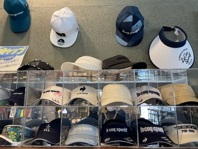 ショップでは春の新作サンバイザーやキャップがたくさん入荷しています。