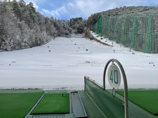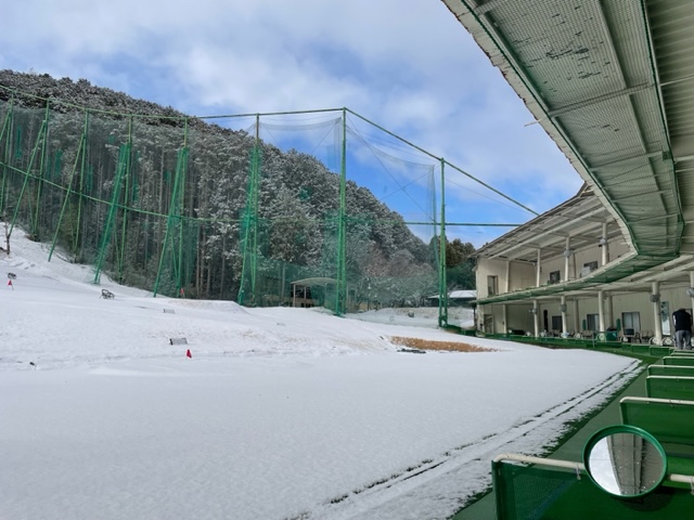 朝8時前から降り始めた雪があっという間に積り、練習場のフェアウェイが真っ白になりました。