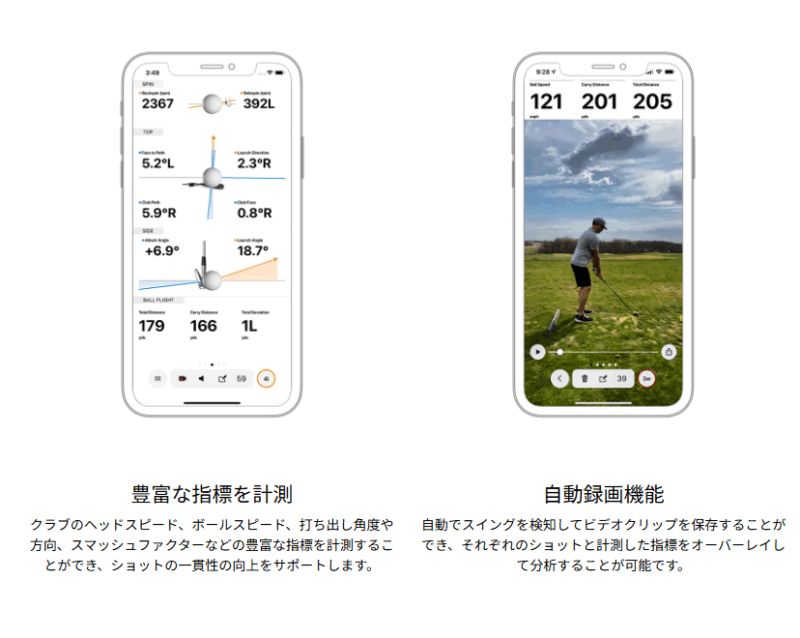 スイング撮影と合わせて、クラブの入射角度、スピン量、クラブ軌道など通常のレッスンでも