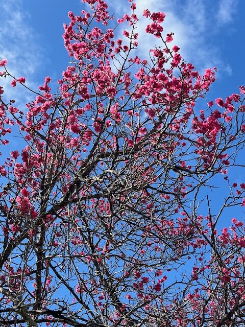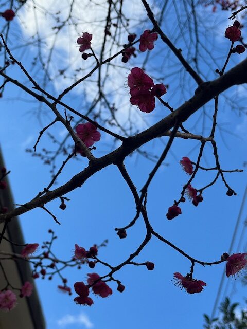 打席の窓からは、綺麗な紅梅がご覧いただけます。