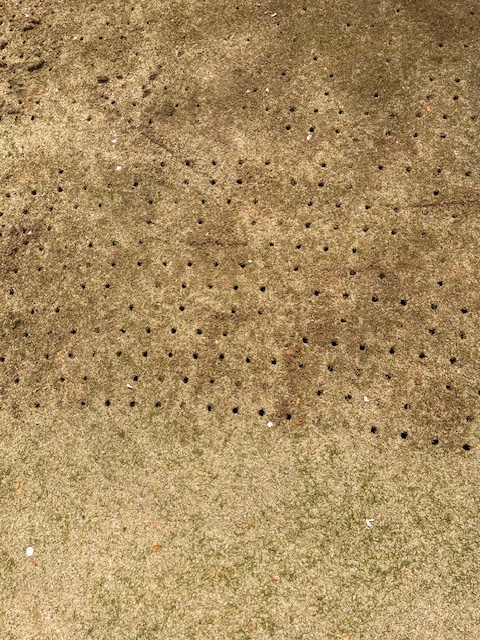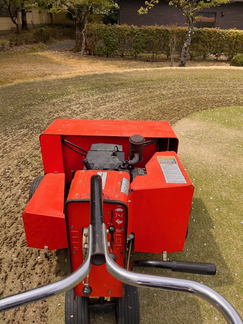 土中へ新鮮な空気を入れ、また芝の根切りもされる事で芝の成長を促していきます。