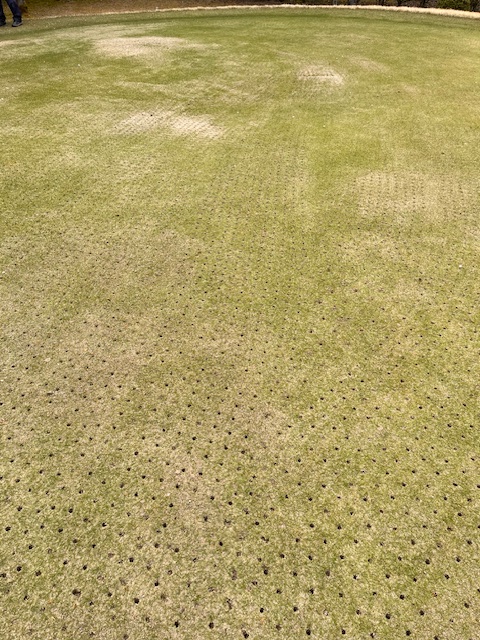 専用の機械でグリーン全体をコアリング(穴あけ)をしていきます。