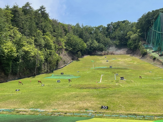 この暑さにも関わらず、シカたちは今日も元気に草を食べに来ています。