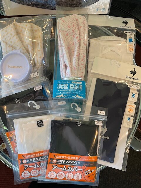 暑さ対策グッズ取り揃えています。しっかり準備してゴルフを楽しみましょう。