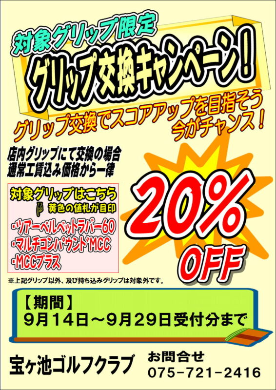 今回、対象のグリップ限定ですが、『グリップ交換キャンペーン』を開催いたします!